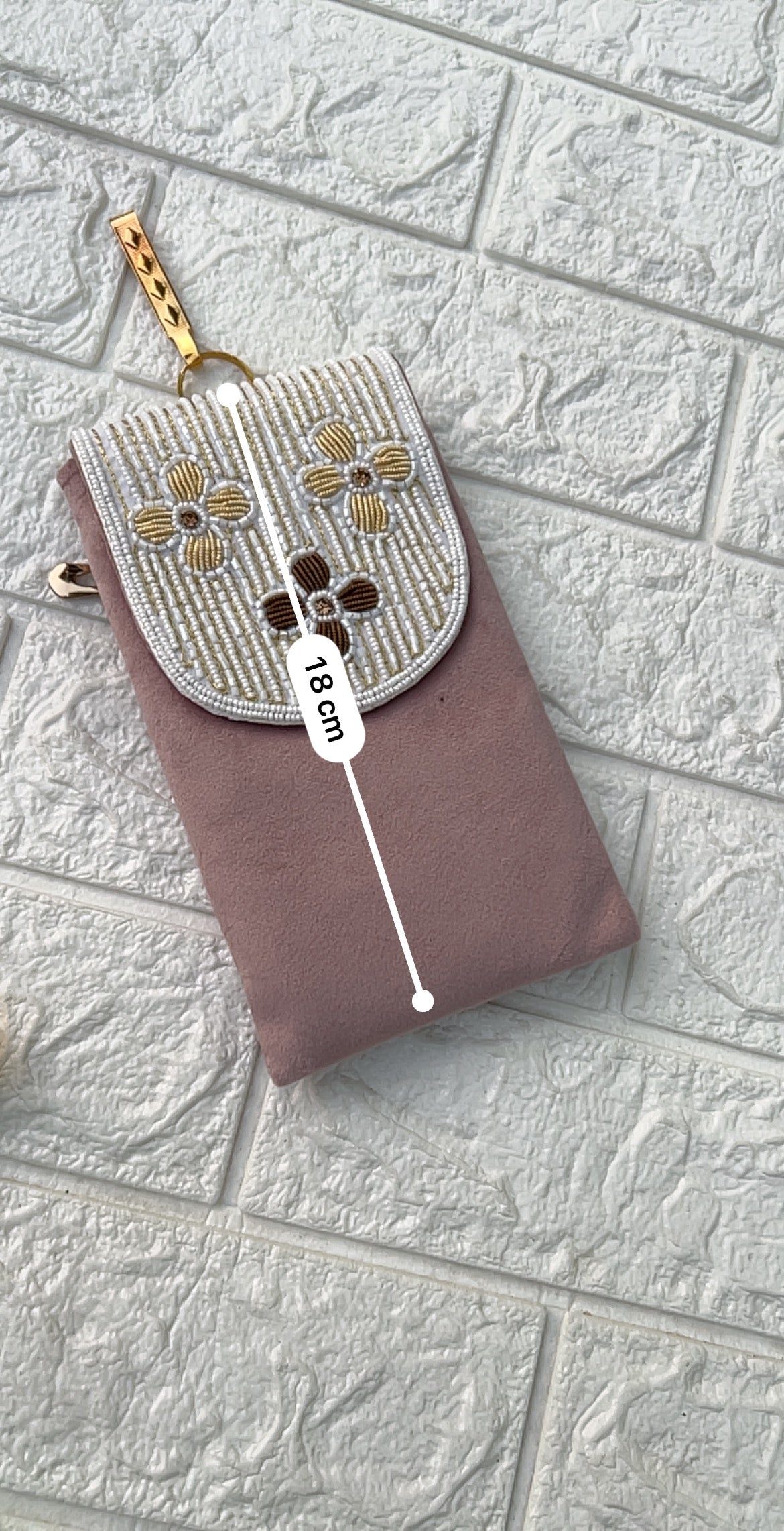 Experience the traditional Indian elegance with our GleamHook 6. Featuring exquisite Moti work and intricate handwork, this mobile bag also comes with a Sari Hook for added convenience. Elevate your style while keeping your phone safe and secure.
