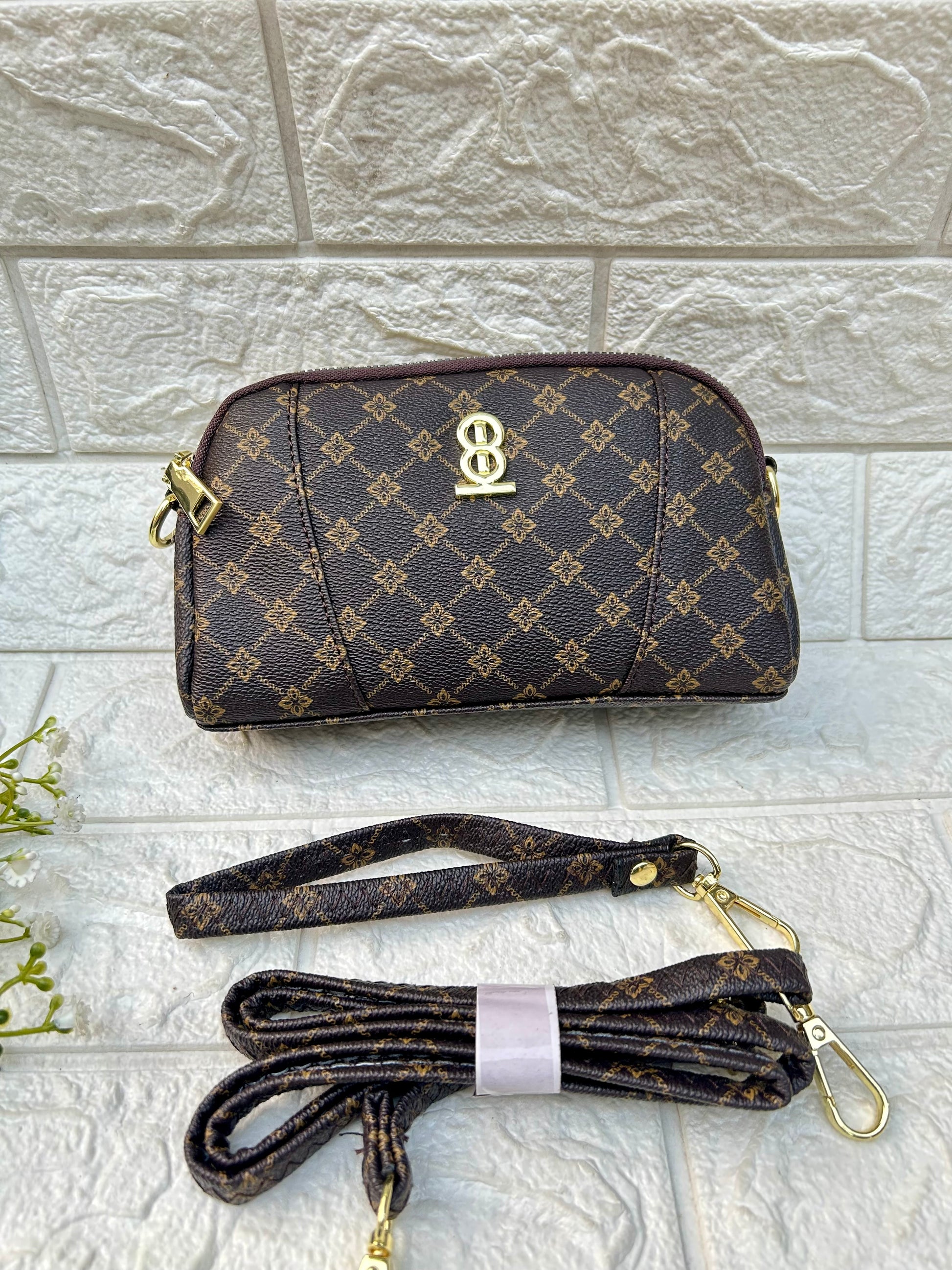 Compact, classy, and super functional—this stylish mini sling pouch is perfect for everyday essentials. Crafted with premium-quality material and elegant monogram print, it features a smooth zip closure, detachable wrist strap, and adjustable sling for versatile styling. Lightweight yet durable, it easily fits your phone, cards, cash, and small must-haves. Ideal for daily outings, travel, or quick errands with effortless style.