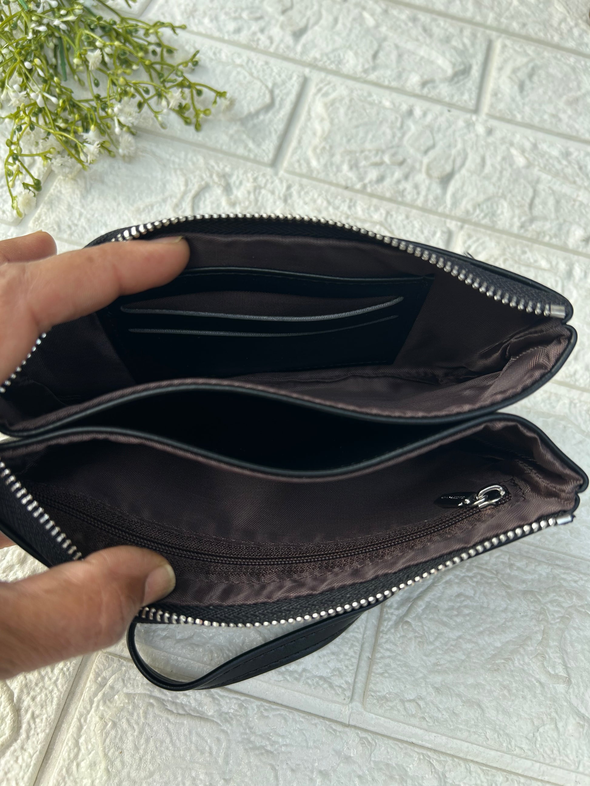 Classic meets modern in this elegant brown wristlet clutch. Crafted with premium-quality material, it features a smooth finish, secure zip closure, and a detachable wrist strap for easy carry. Compact yet spacious enough for your phone, cash, cards, and essentials—perfect for office, outings, or everyday use. A timeless piece that adds effortless style to any look.