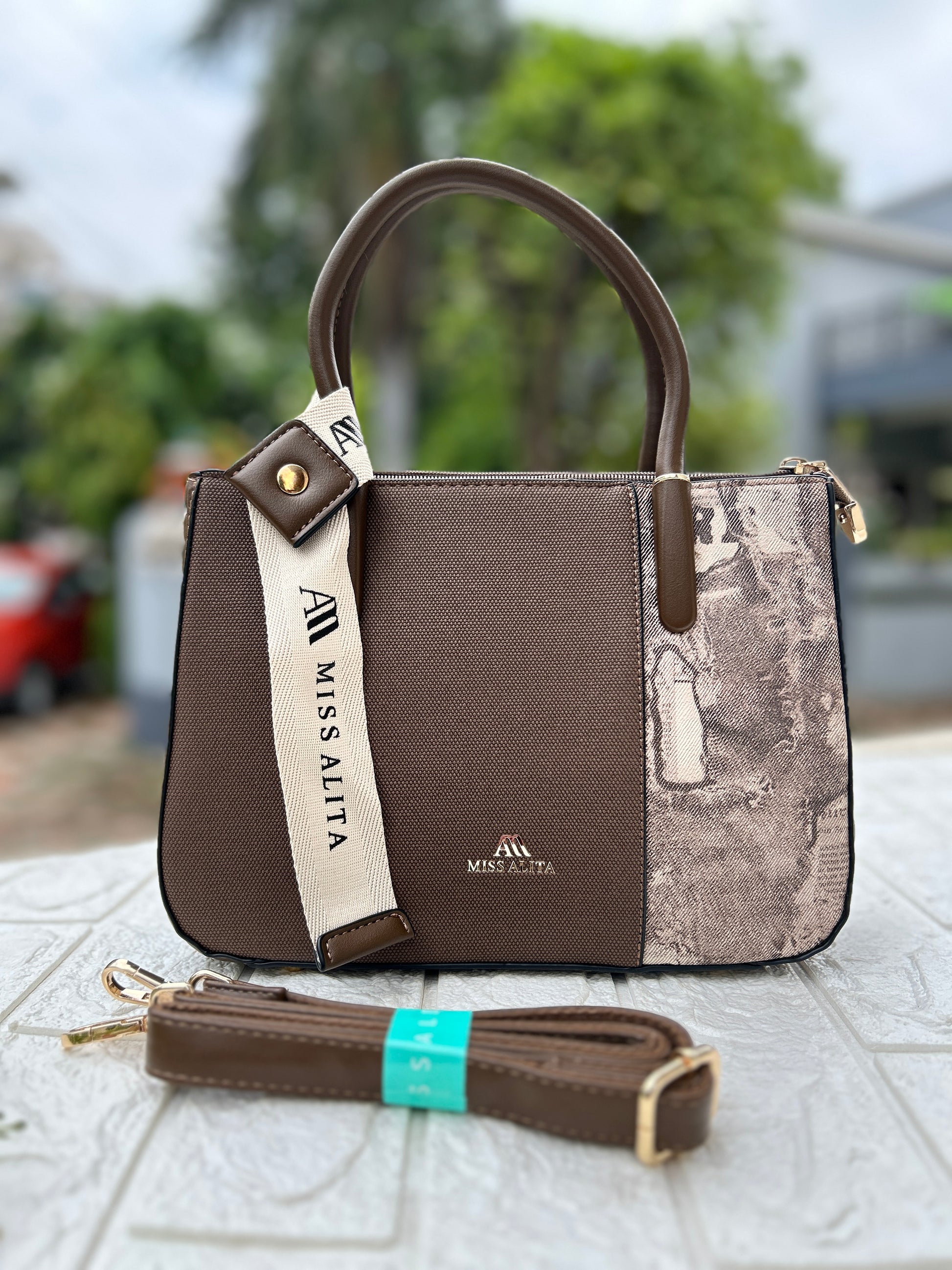 Indulge in luxury with the Alita Handbag. Crafted with the finest materials, this handbag boasts impeccable quality that is sure to elevate any outfit. Its unique design offers versatility, with a detachable sling strap for added convenience. Elevate your style with the Alita Handbag.