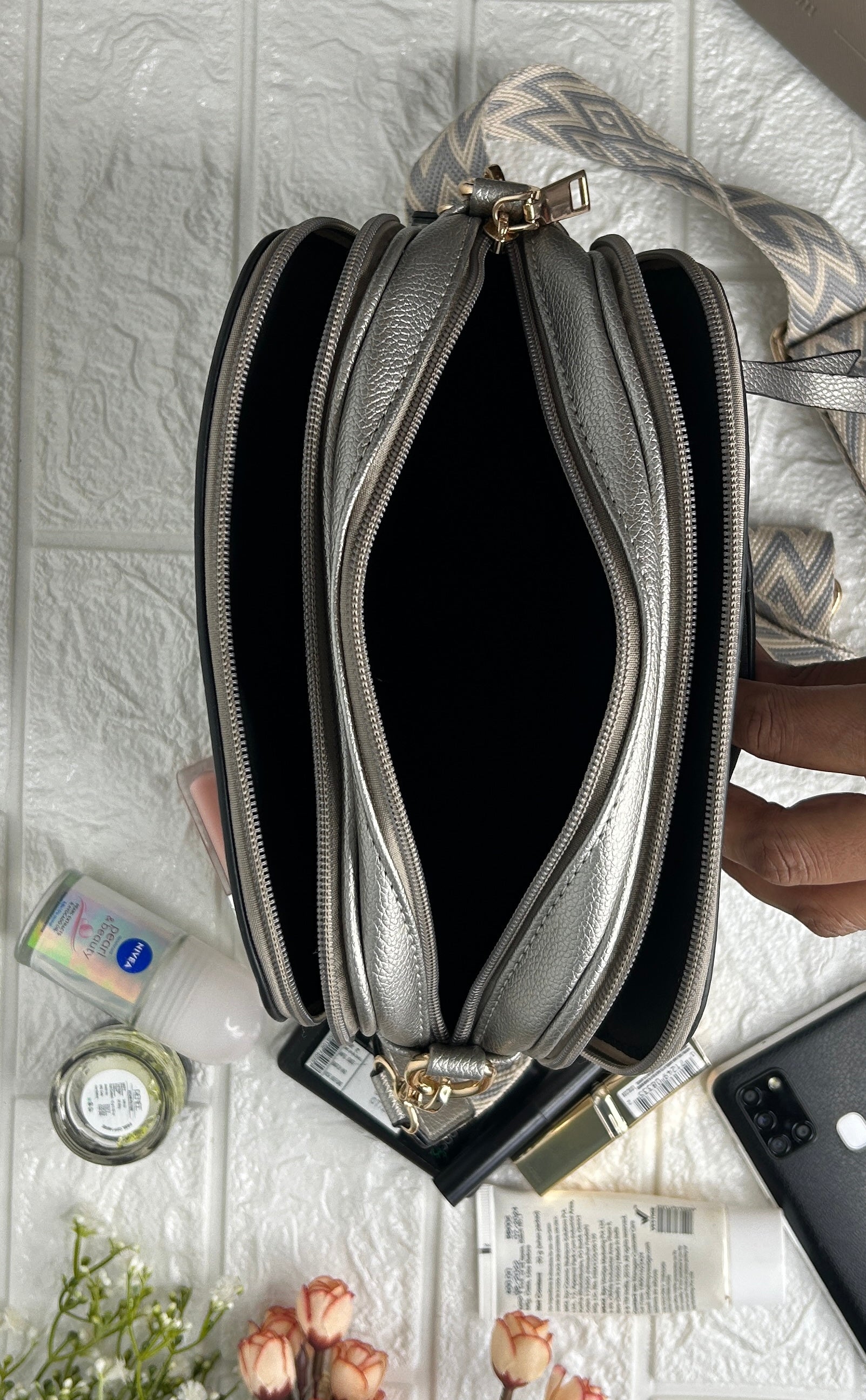 Indulge in effortless organization with DailyEase. This luxurious sling bag boasts multiple compartments to keep all of your essentials easily accessible. Its spacious design makes it perfect for daily use, allowing you to effortlessly carry all of your necessities in style. Elevate your routine with DailyEase.