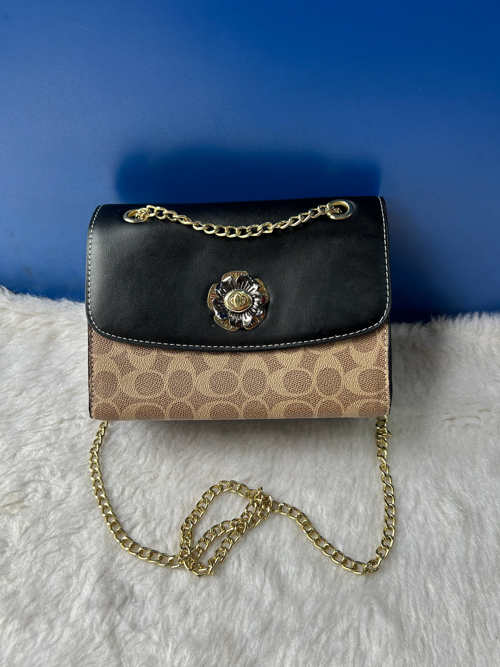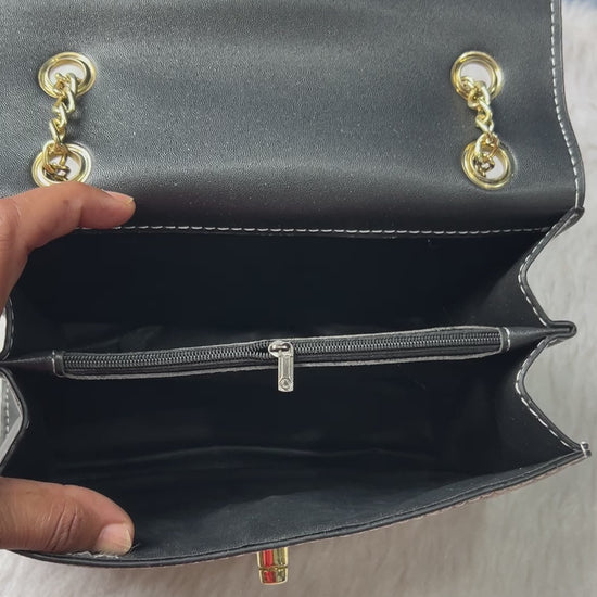 Indulge in luxury and elegance with our Dupe sling bag. Crafted with a spacious interior and adjustable golden metal sling strip, this bag effortlessly combines practicality and sophistication. Perfect for any occasion, it's a must-have for the fashion-forward individual.