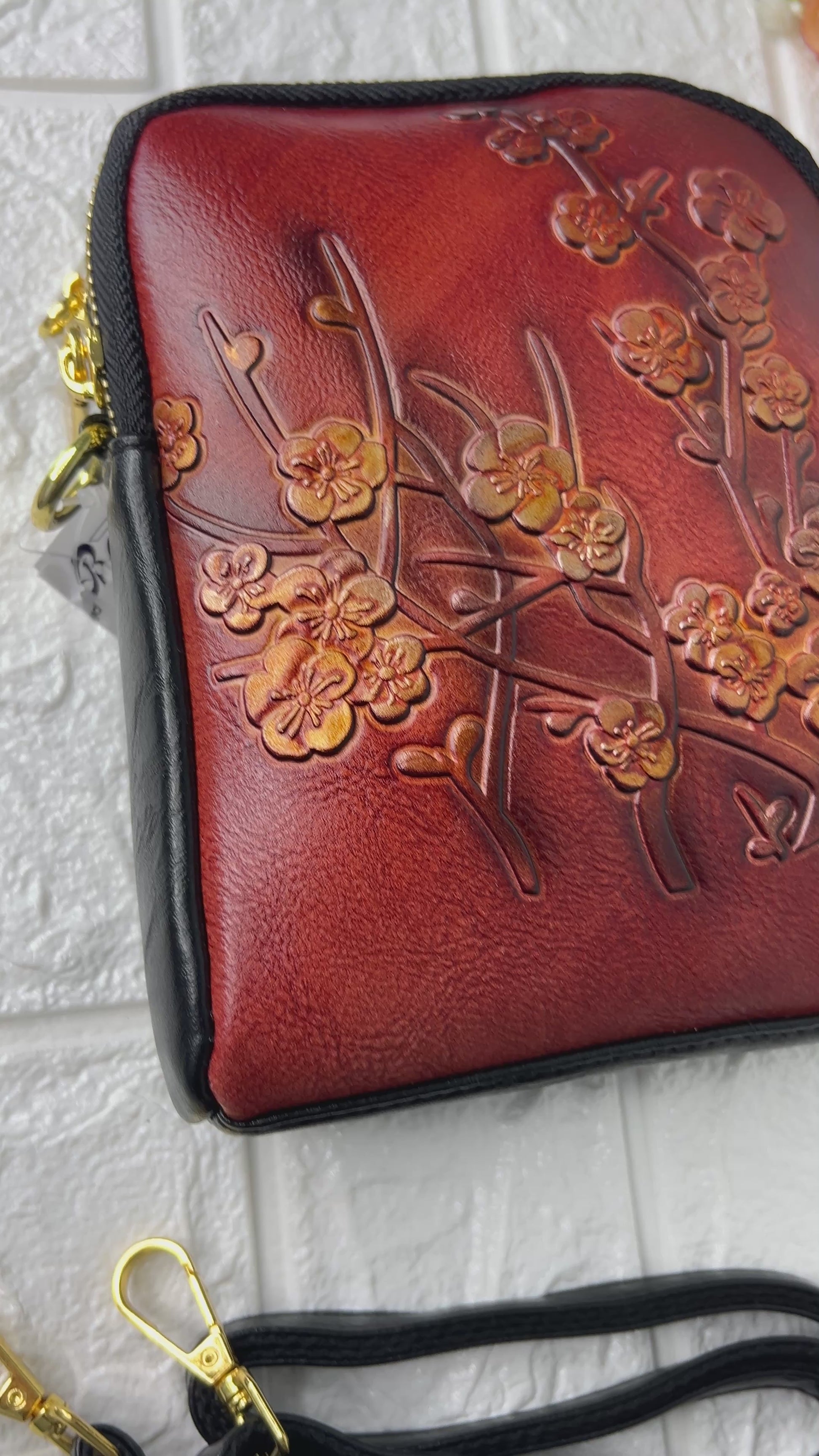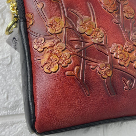 Introducing the exquisite Plum Blossom Mobile, a vintage-inspired swing bag adorned with delicate plum blossom flowers. This self-emboss bag features two zip compartments, perfect for storing all your essentials. Elevate your style with this unique and elegant piece.
