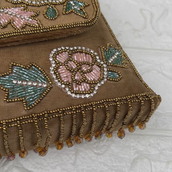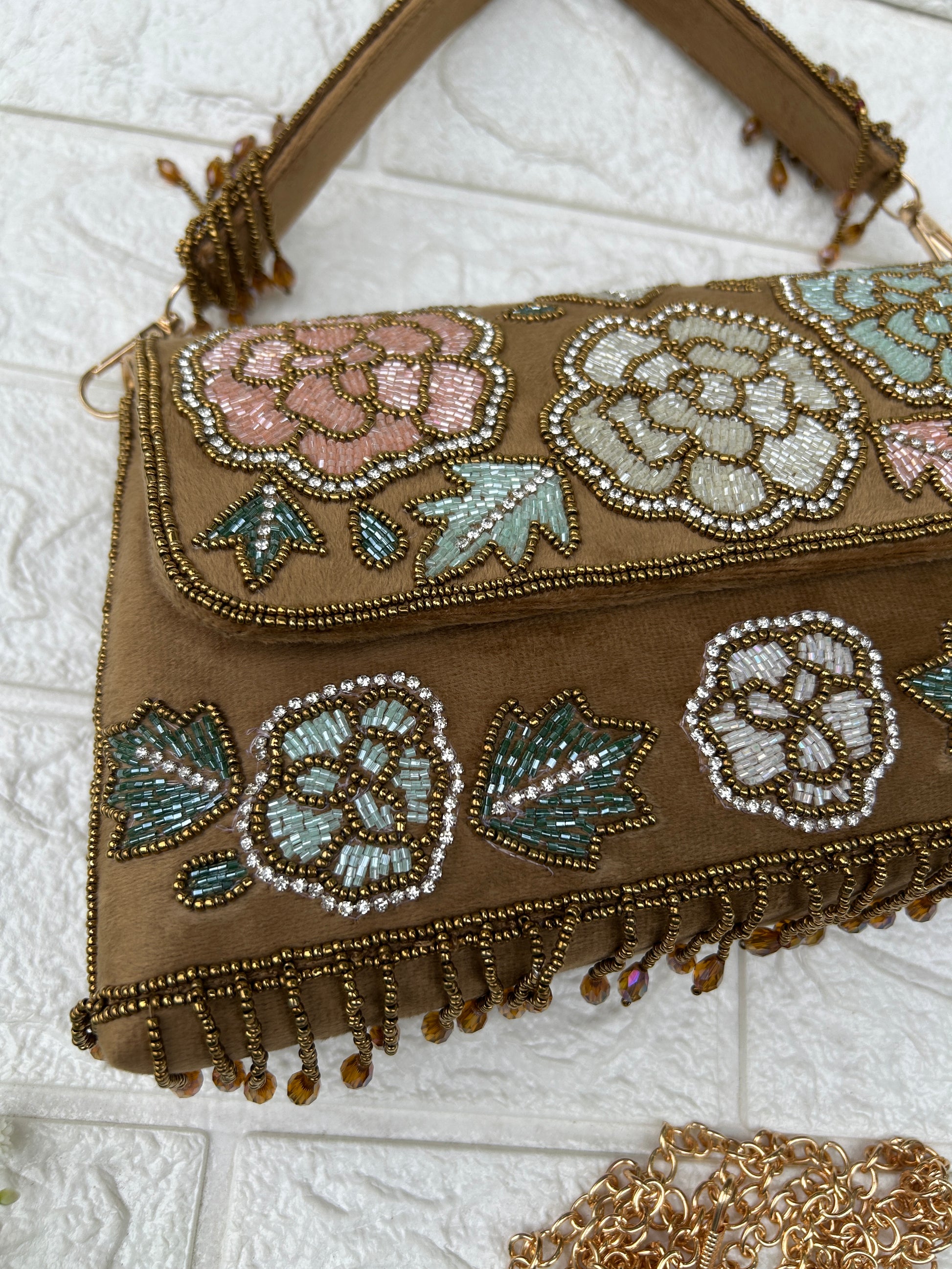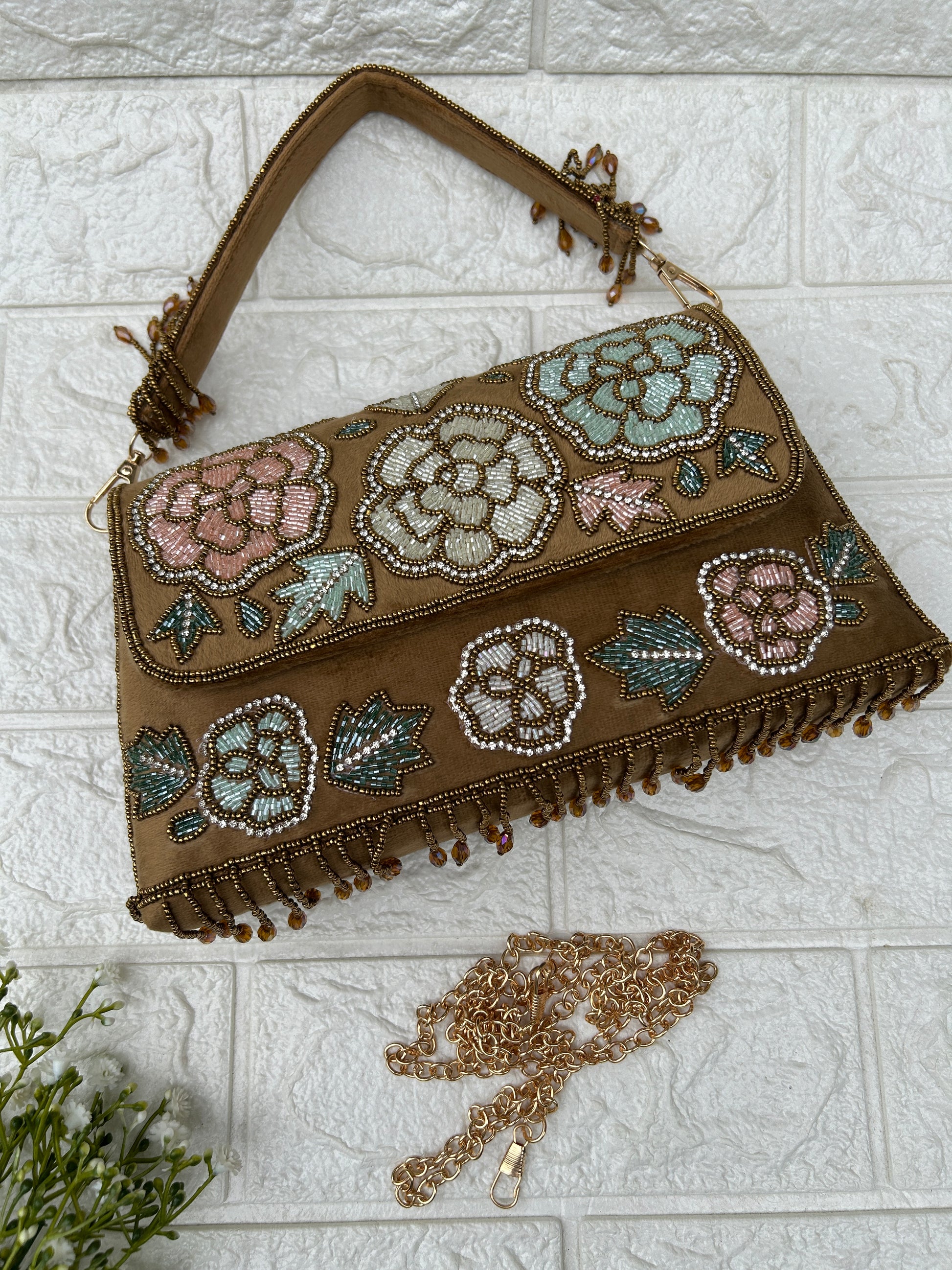 Indulge in luxury with the Noor-2 handwork party bag. Available in 4 beautiful colors, this bag features exquisite handwork and includes a detachable handle for versatility. Perfect for any special occasion, elevate your ensemble with a touch of elegance and sophistication.