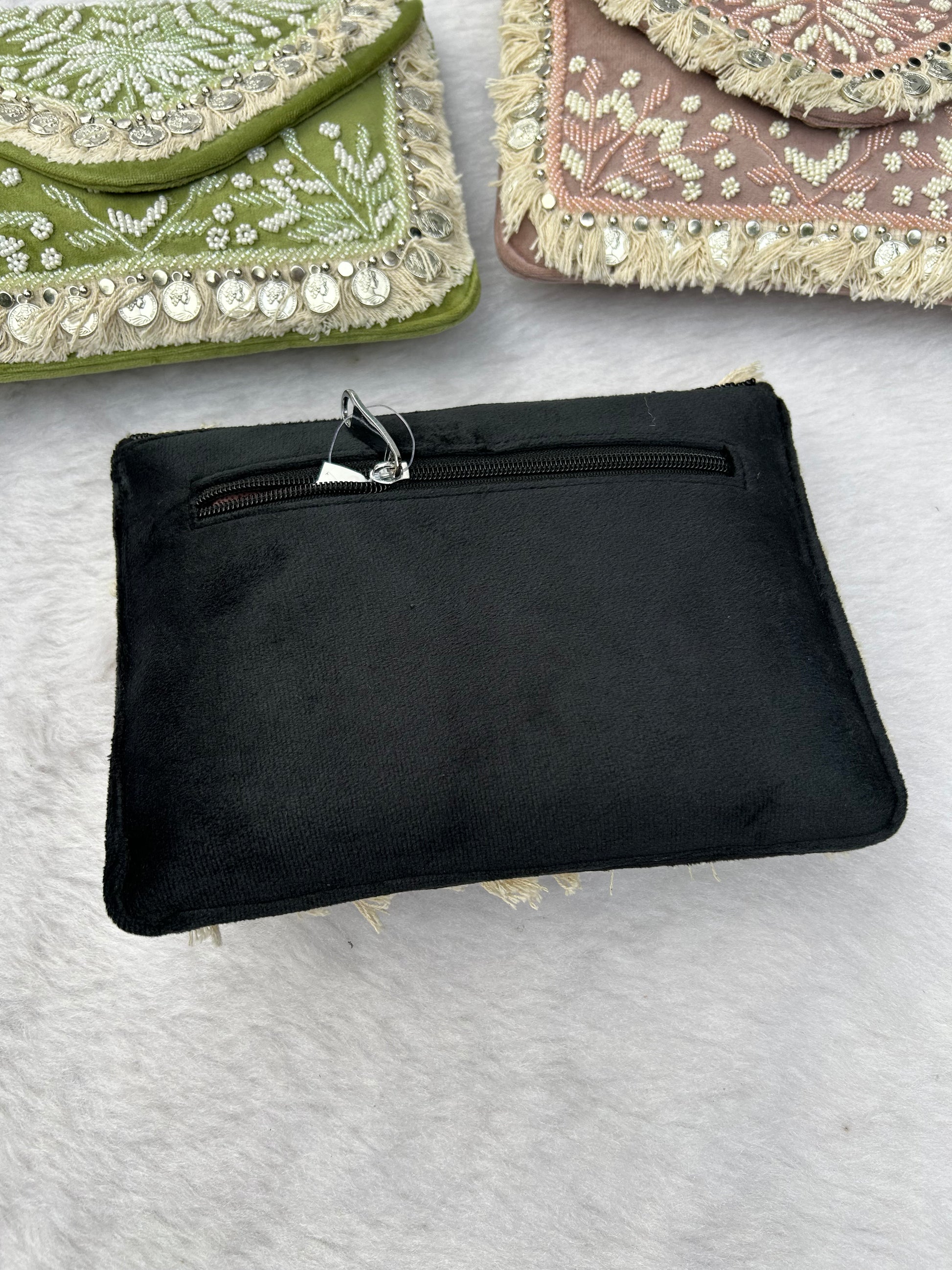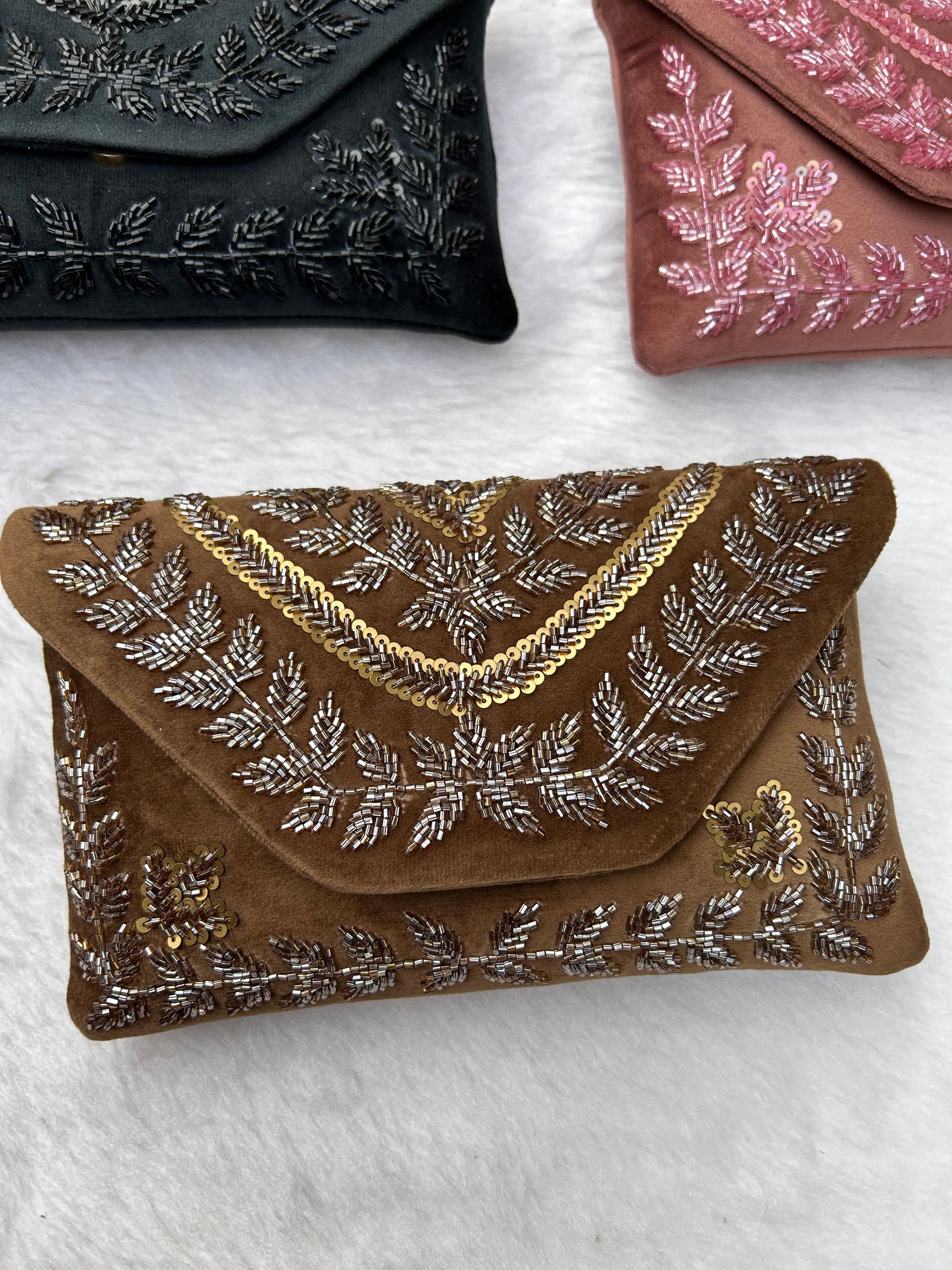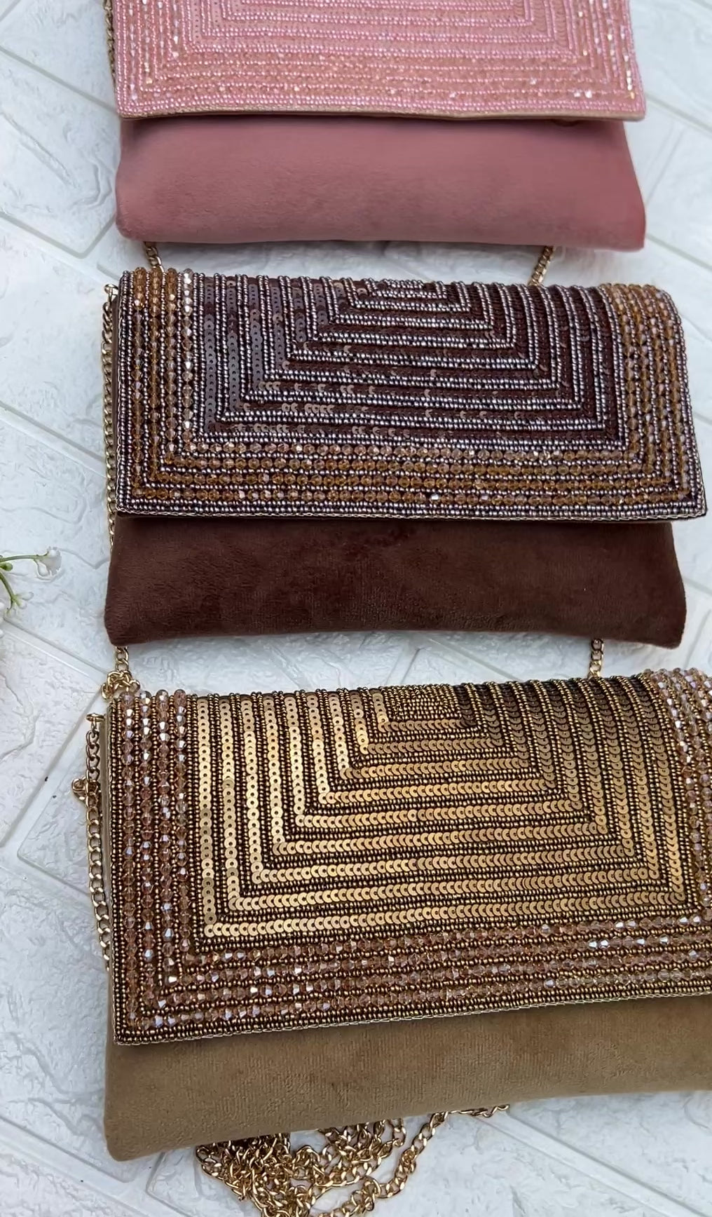 This RimmmZimm clutch is a beautiful and intricate work of art, handcrafted with sparkling crystals and detailed sequins. It features a detachable metal golden color sling strap, making it versatile for any occasion. A perfect gift for a loved one or a must-have for the festive and wedding season.