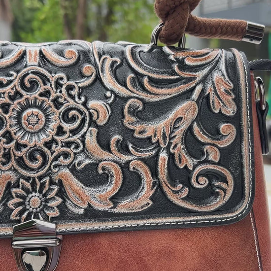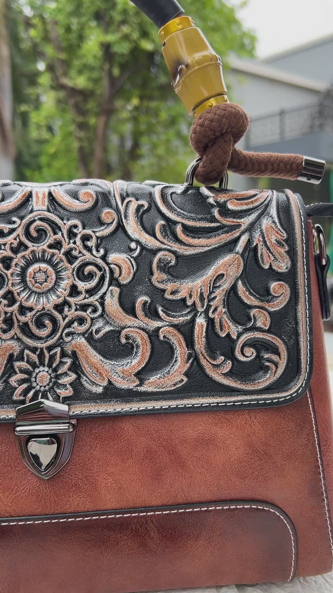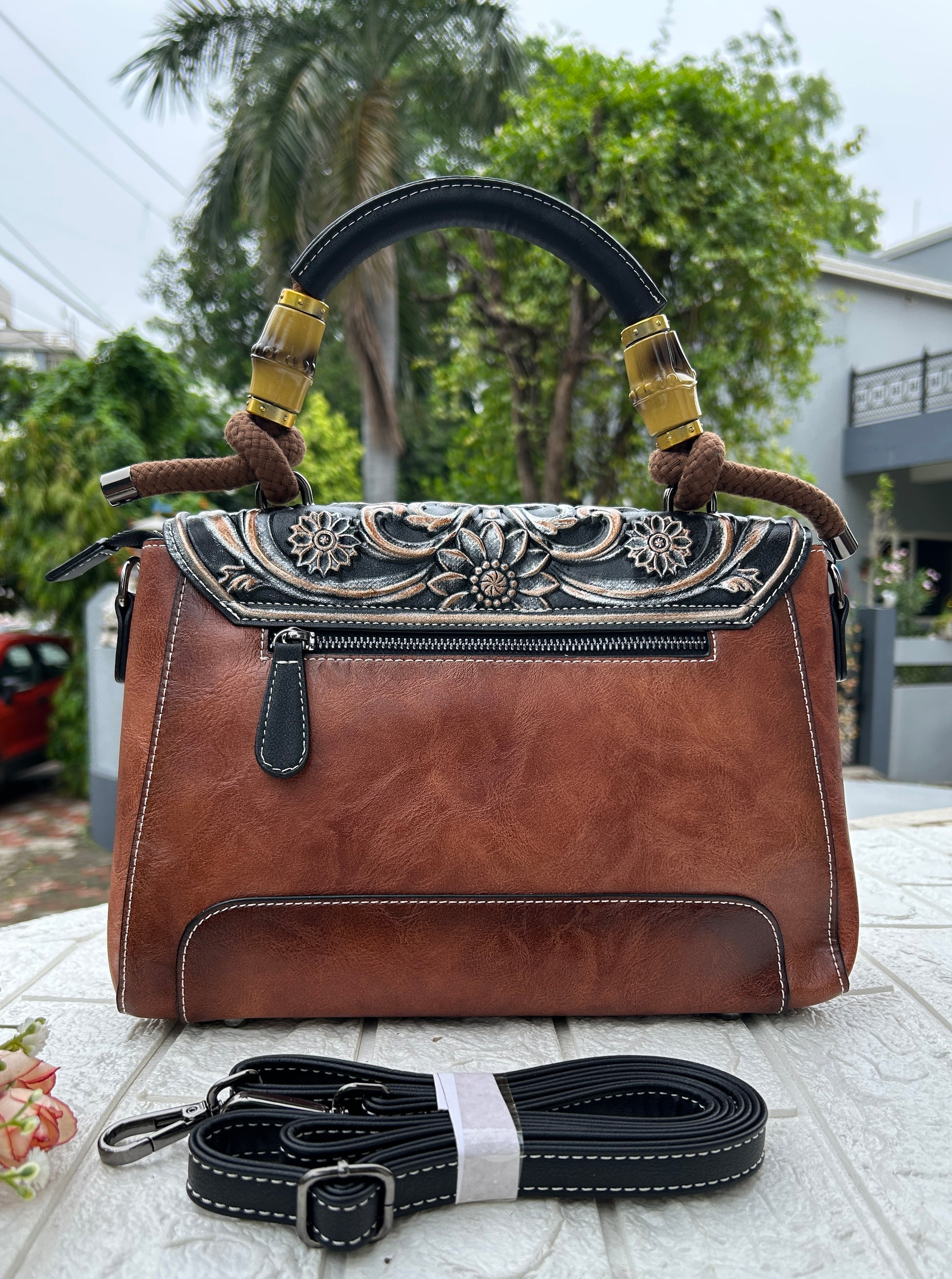 "The Rue Vintage Handbag is expertly crafted from high-quality PU leather, giving it a classic and timeless vintage appeal. Its durable material ensures long-lasting use, while its elegant design adds a touch of sophistication to any outfit. Elevate your style and accessorize with this beautiful and functional handbag."