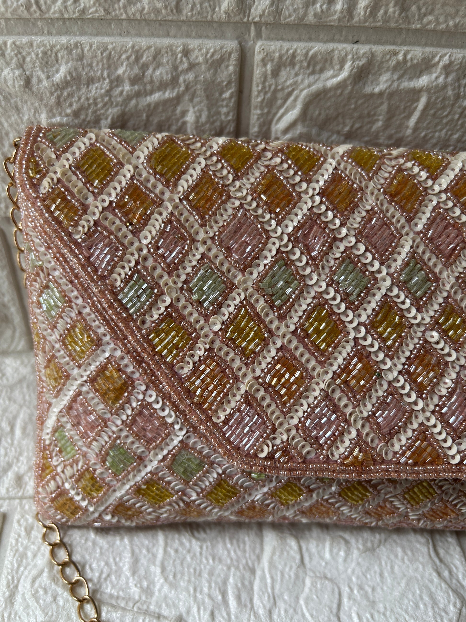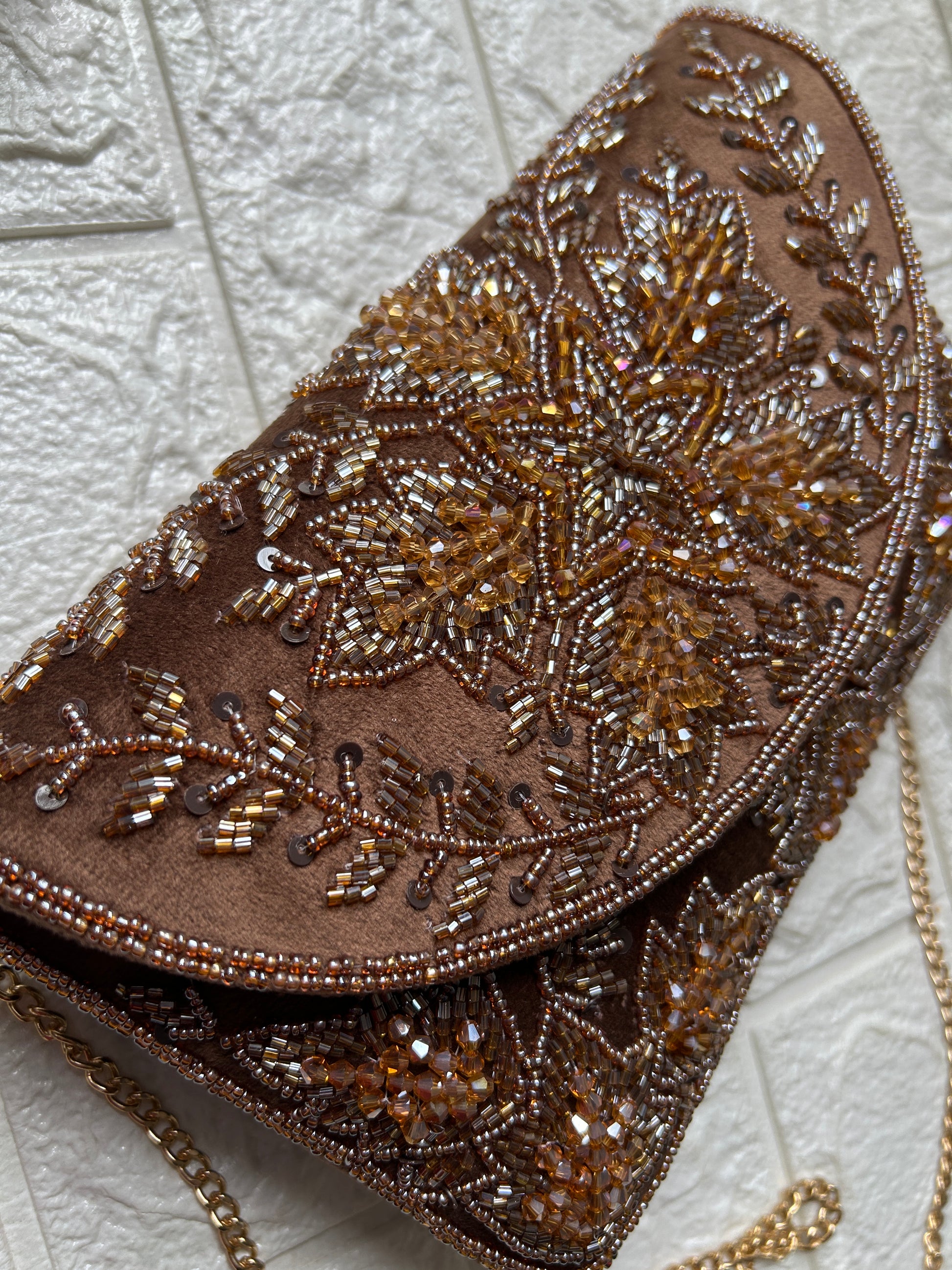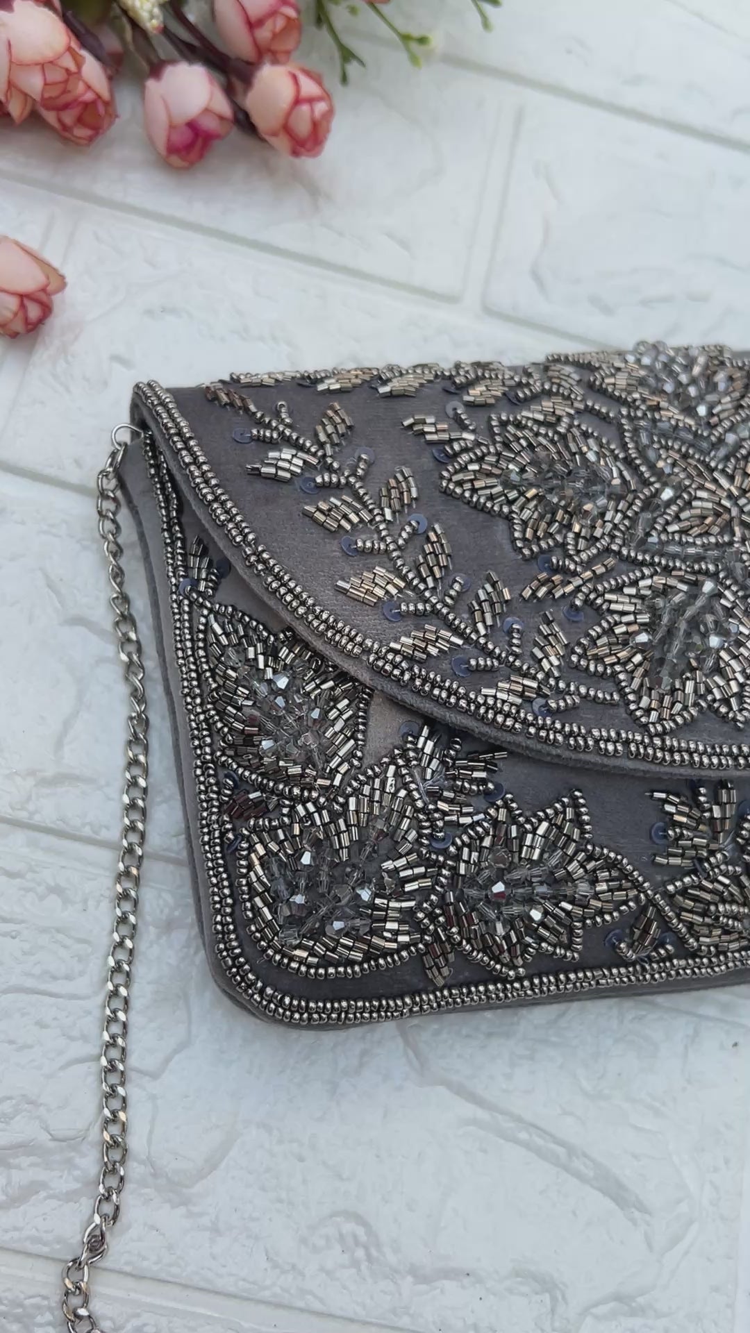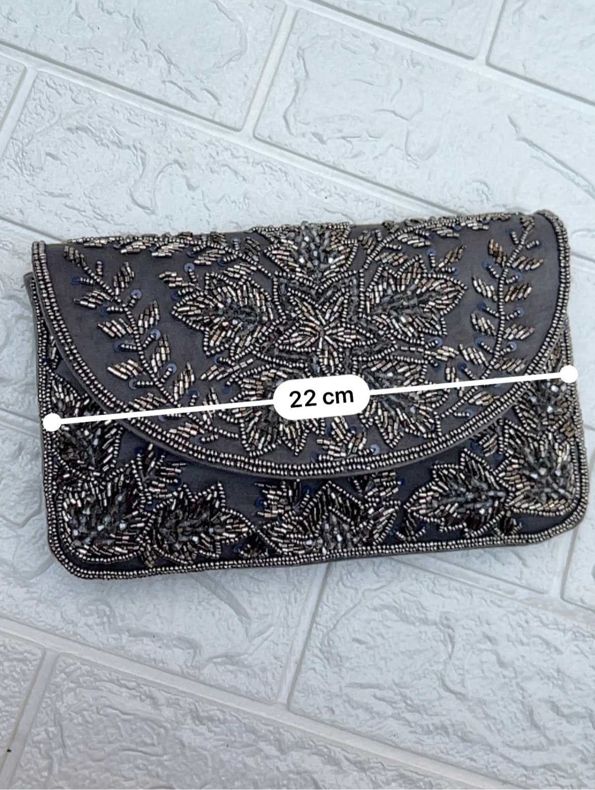 Introducing Shine & Chic, the epitome of elegance and exclusivity. This handcrafted clutch bag features intricate handwork and comes with a detachable metal sling strap for versatile use. Take your style to the next level with Shine & Chic.