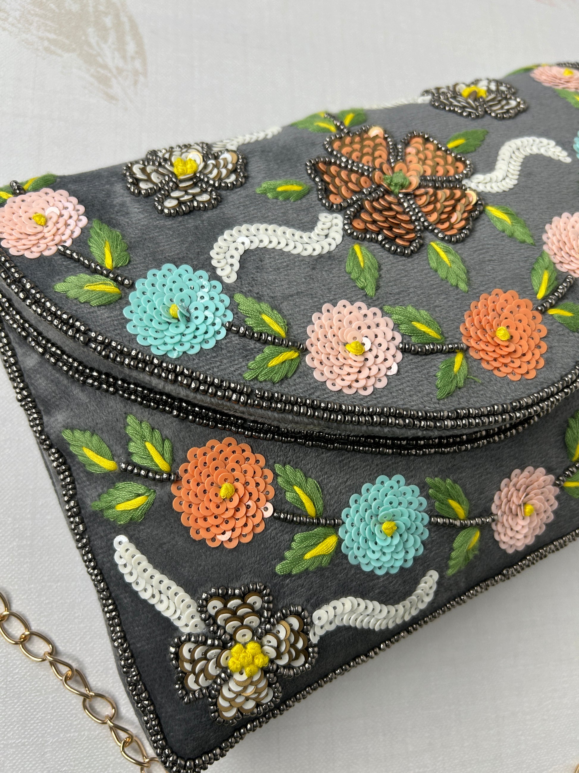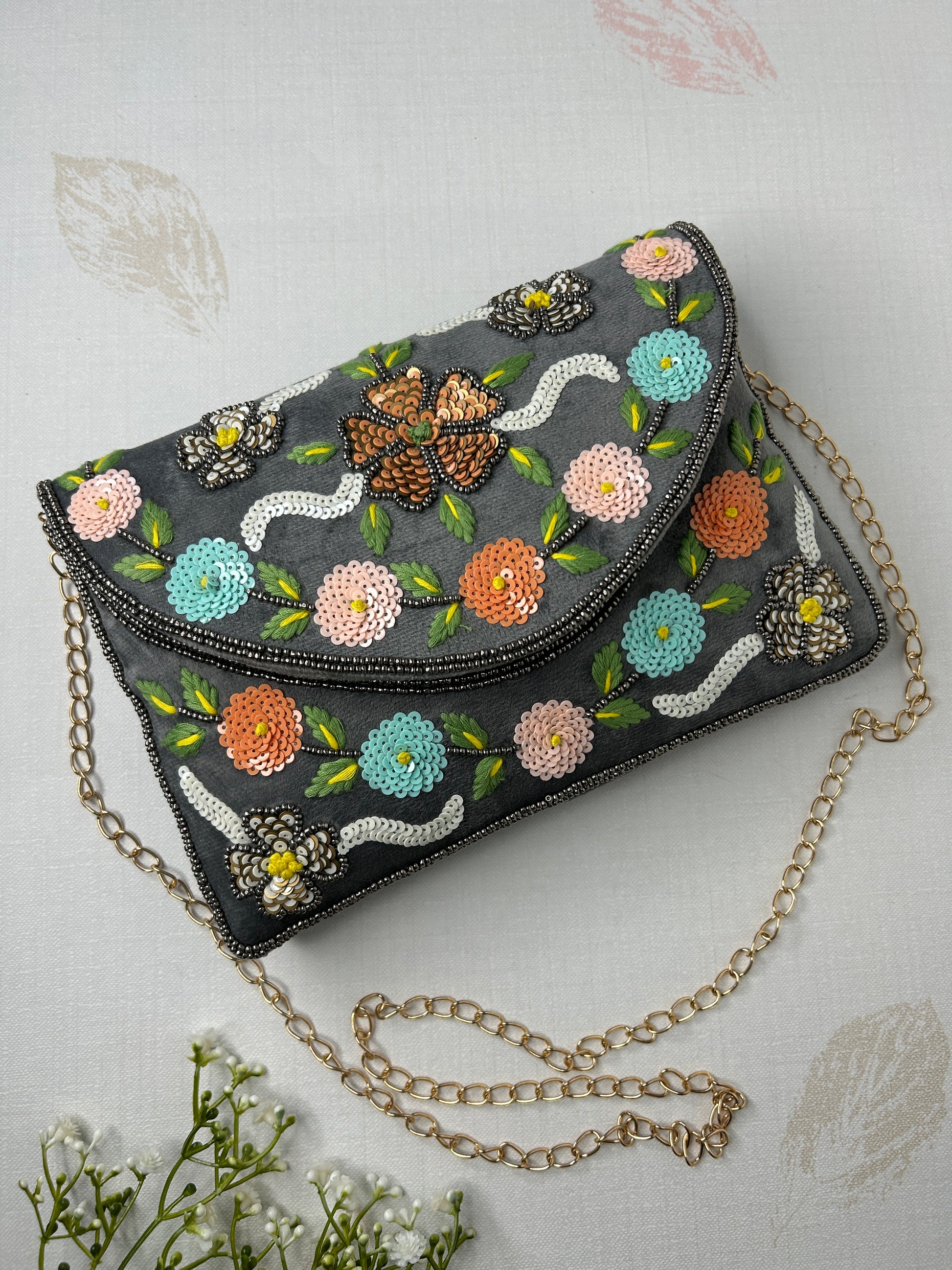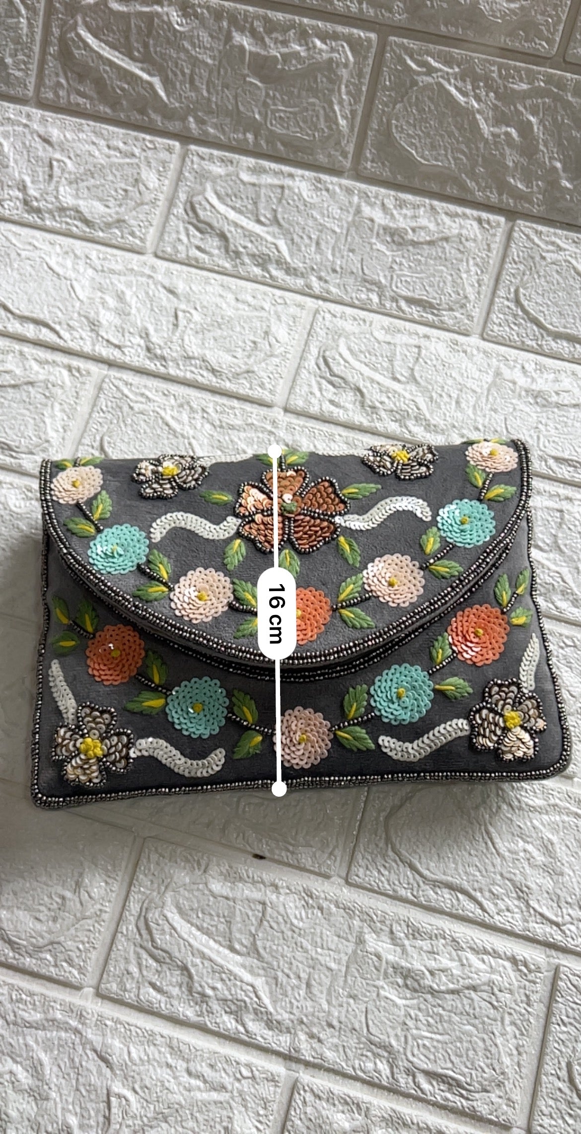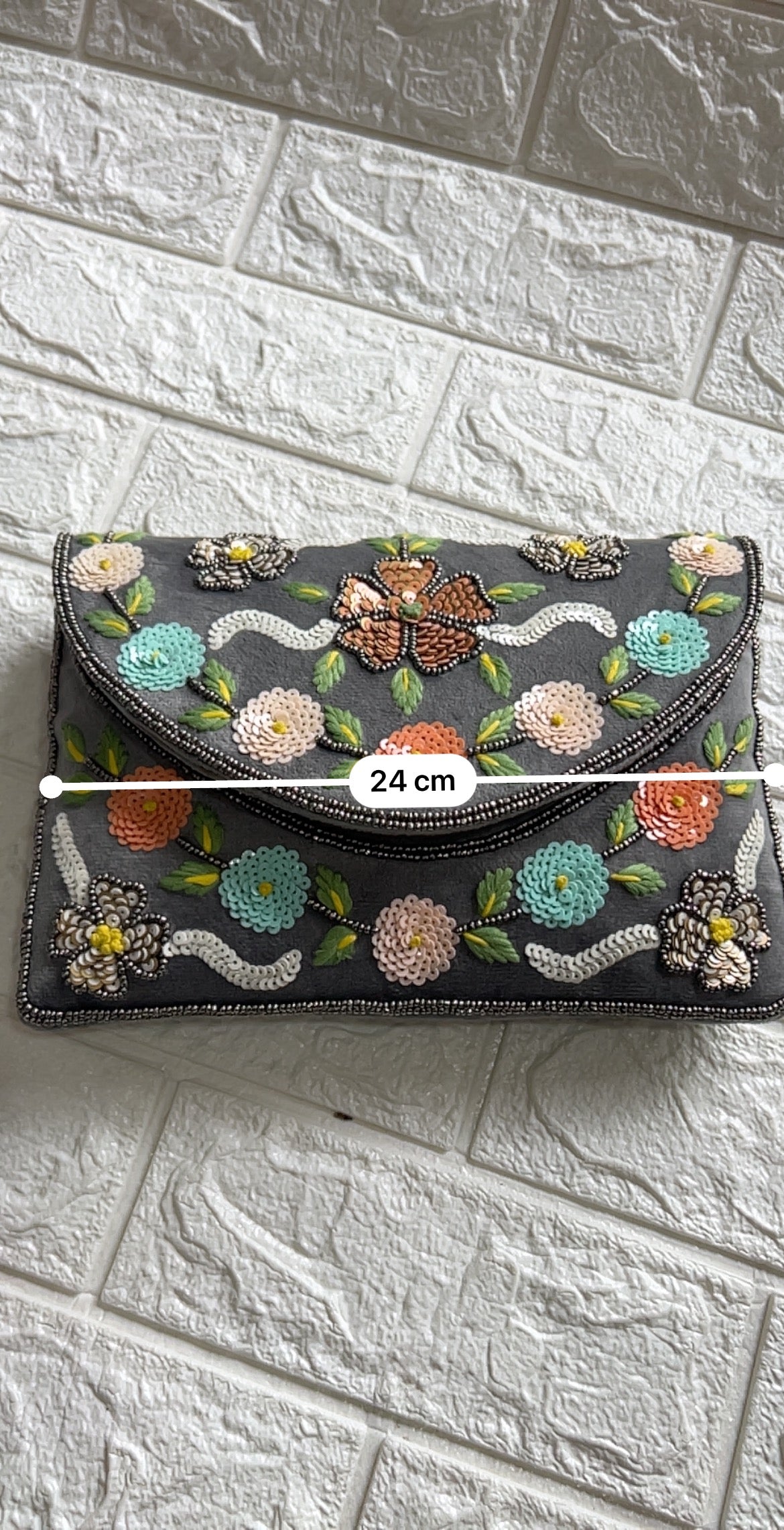 Introducing the Shine & Chic 5, a handcrafted clutch bag perfect for any occasion. Made with exquisite handiwork and a detachable metal sling strap, this bag is both elegant and practical. Elevate your style with this luxurious accessory.