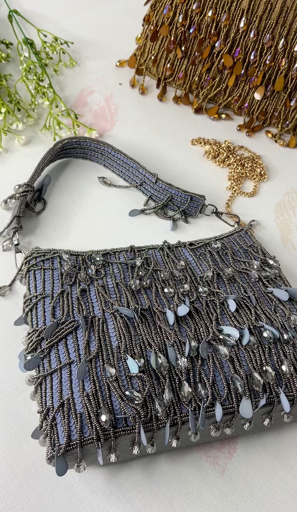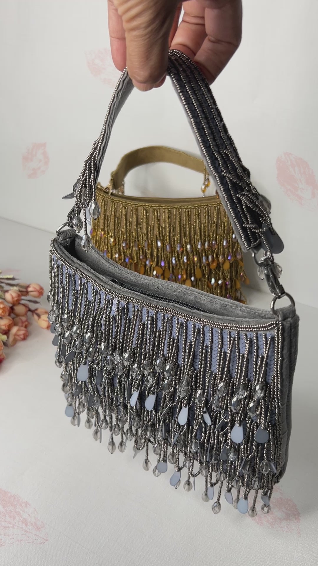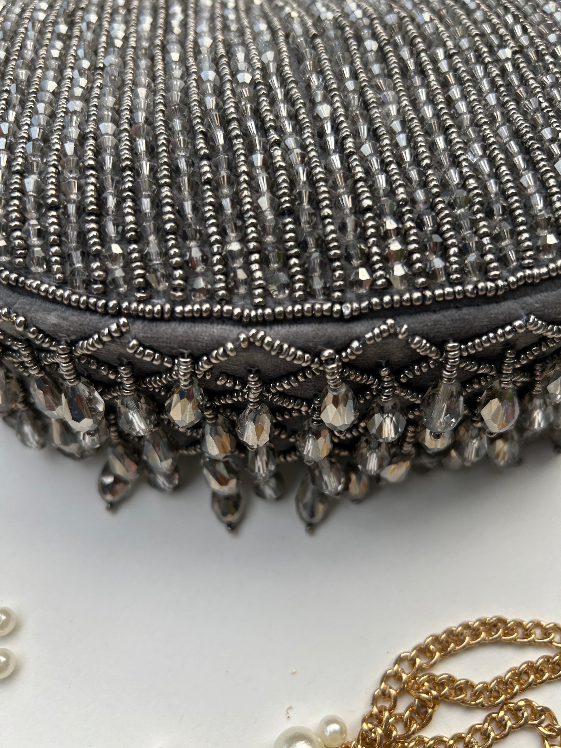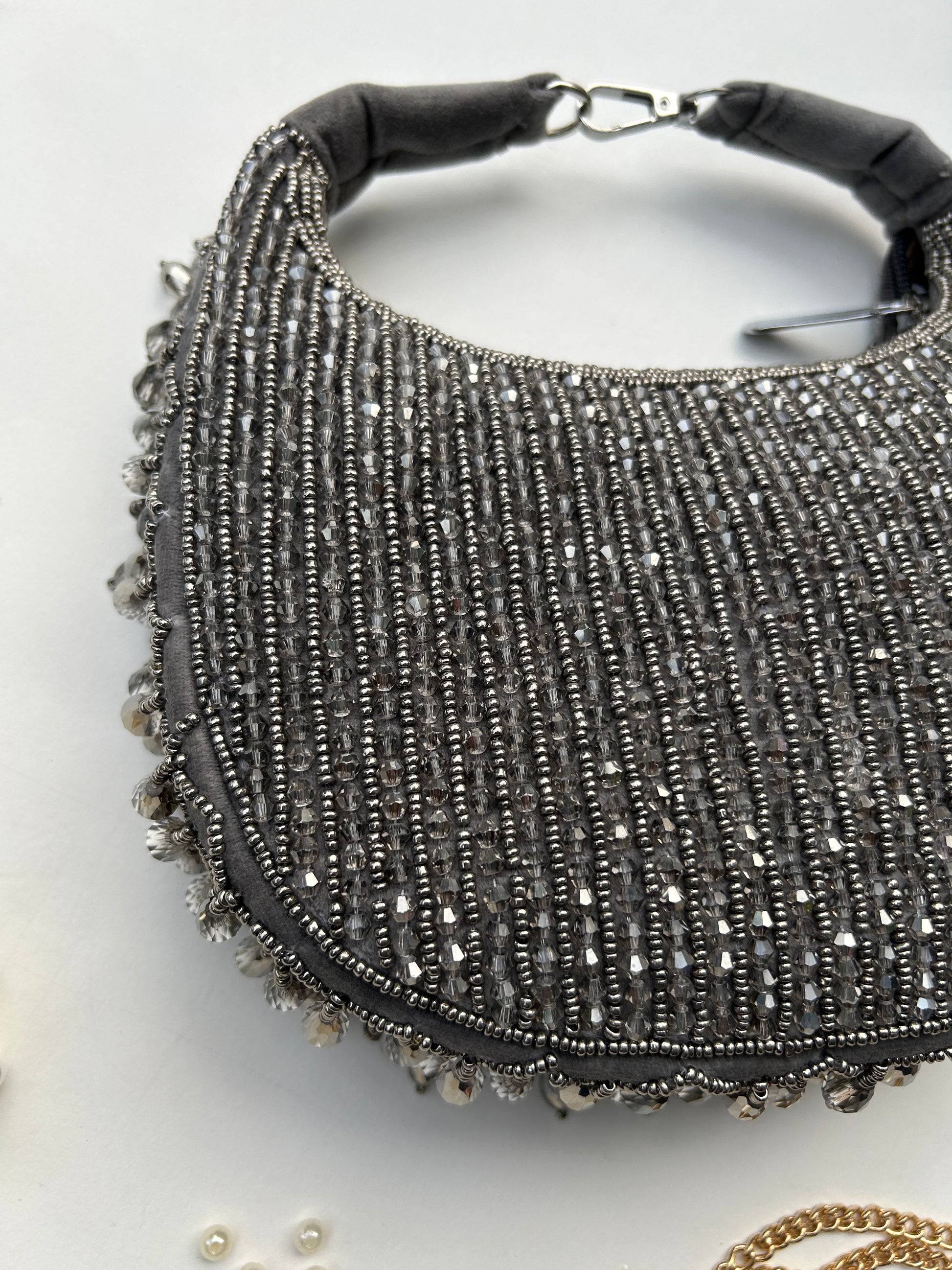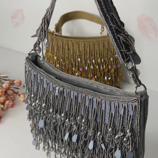 Experience the allure of Sparkle Aura, a handcrafted party bag that exudes elegance and uniqueness. Designed to steal all attention, this bag is sure to set you apart and make a statement. With its intricate handiwork, it's the perfect accessory for any luxurious event.